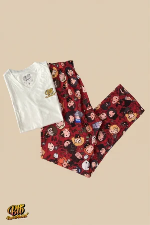 Esta pijama te transporta al increíble universo de Harry Potter, recreado con un estilo vibrante que evoca la magia de los cómics y las series animadas de los 90.