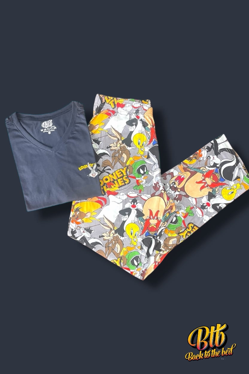 Esta pijama celebra a los personajes más locos, irreverentes y queridos de la animación clásica, cuya comedia marcó el estilo de los Looney Tunes y definió el humor por generaciones.