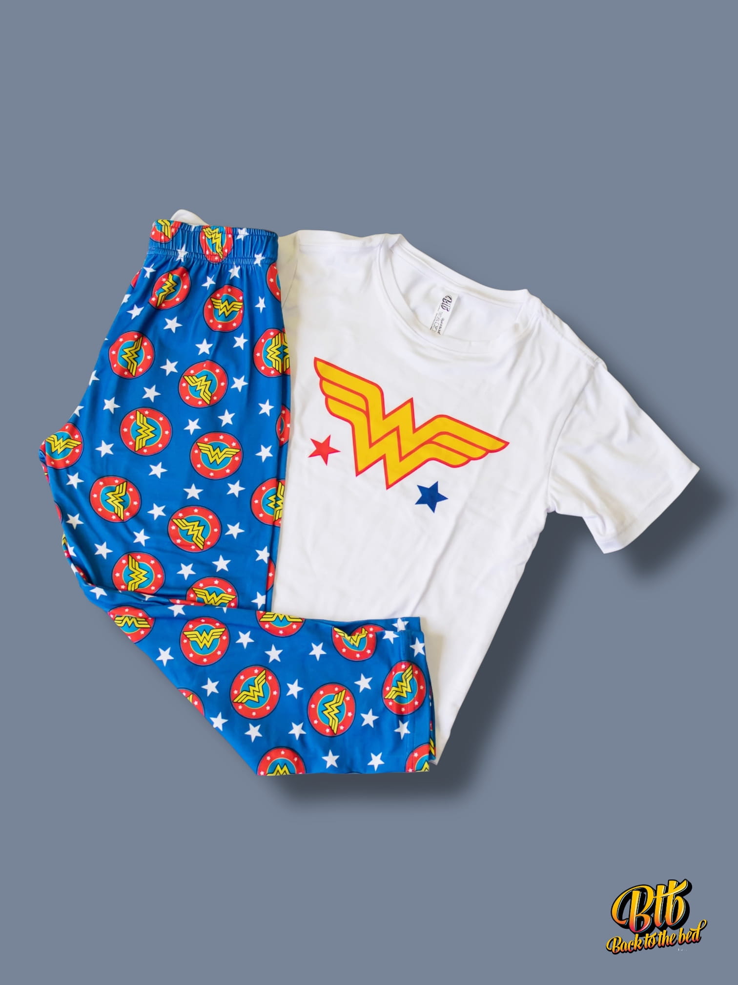 Esta pijama está dedicada a la superheroína más grande de todos los tiempos, un faro de fuerza, verdad y compasión: La Mujer Maravilla (Wonder Woman).