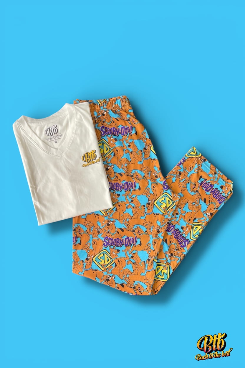Esta pijama celebra a la pandilla más icónica de la animación y a su asustadizo pero valiente gran danés: Scooby-Doo.
